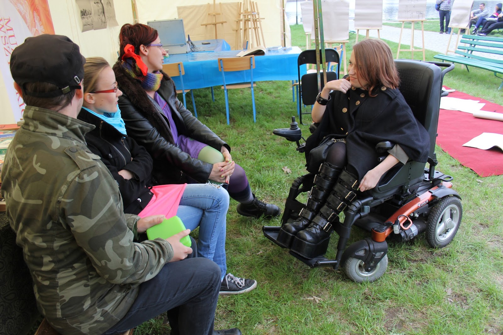 Gdy nadeszła pora spotkania autorskiego śmiało powędrowaliśmy w stronę firmowego namiotu Muzeum. Tam poznałam kolejnych przesympatycznych pracowników… I spędziłam resztę dnia. Na spotkaniu nie pojawił się nikt z zewnątrz, więc siedzieliśmy w naszym małym gronie i rozmawialiśmy. Można powiedzieć, że odbyła się najbardziej przeze mnie ceniona forma spotkania autorskiego – zwykła przesympatyczna rozmowa o pasjach, pracy, literaturze, nadziejach.