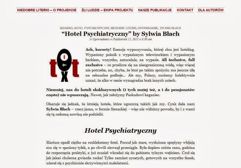 W ten sposób powstał pomysł na tekst do którego lektury zachęcam! Tradycyjnie już – wbijajcie na Niedobre Literki – bo bizarro z rana jak śmietana (bez skojarzeń!) 😉