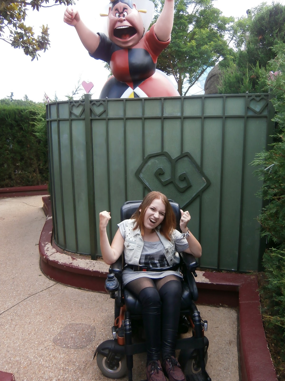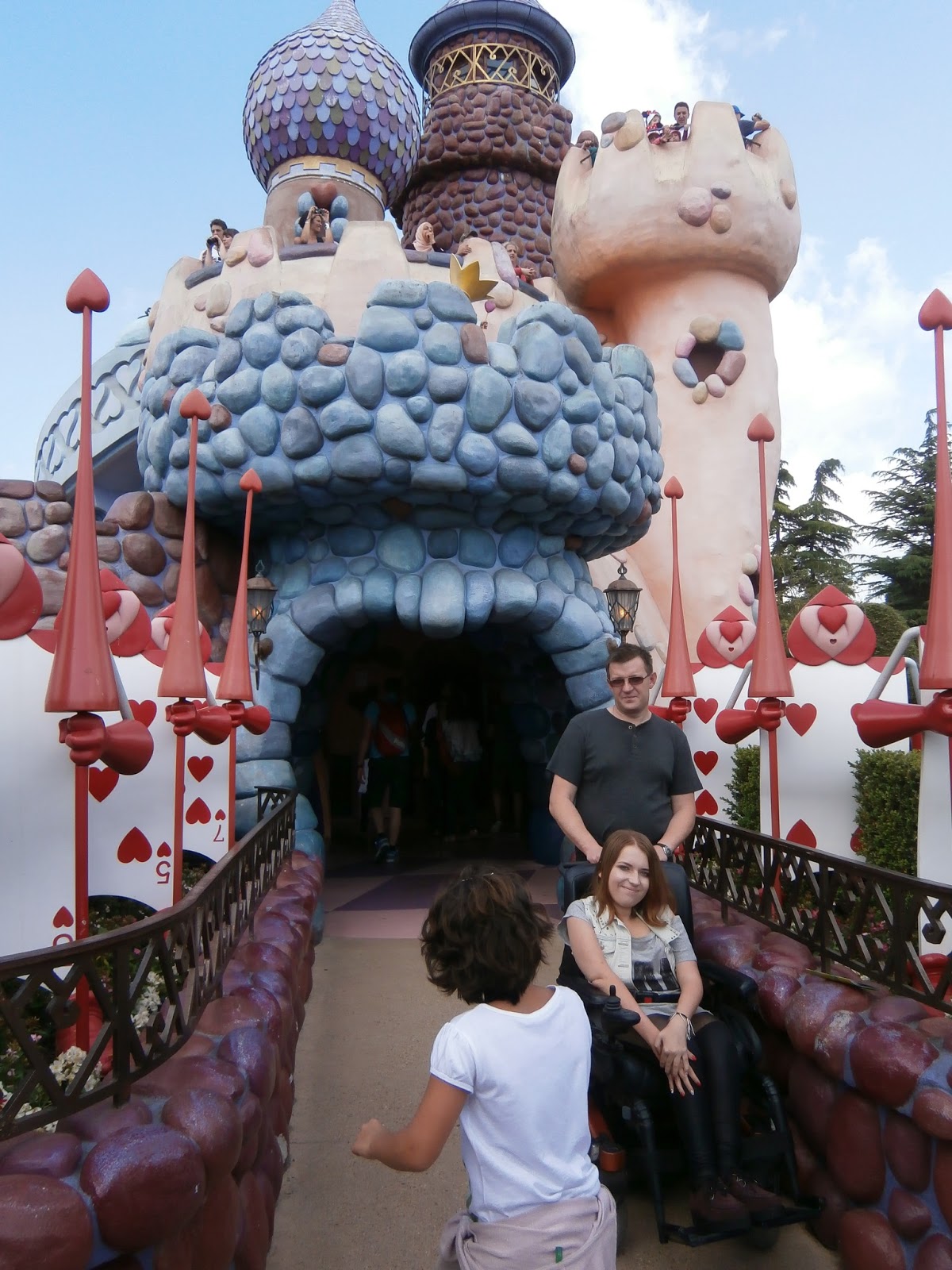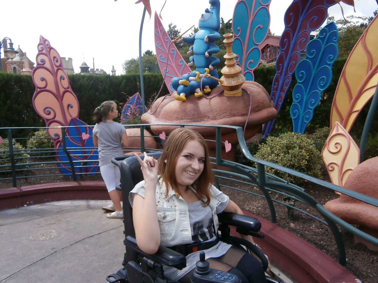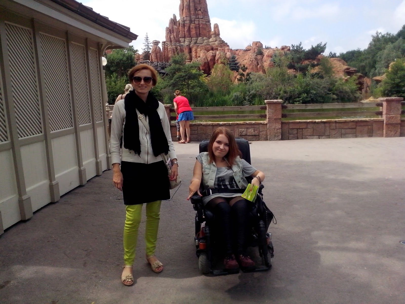 Bilety zarezerwowałam wcześniej przez Internet, dzięki czemu udało nam się sporo zaoszczędzić i ominąć długie kolejki przy kasach. Potem jednak musieliśmy odczekać swoje – okazało się, że osoby z niepełnosprawnością mogę wchodzić na wszystkie atrakcje specjalnie do tego przeznaczonym wejściem, ale wcześniej trzeba odebrać specjalny bilet. Przystosowanie parku pod tym względem jest niesamowite: na bilecie zaznaczony był typ mojej niepełnosprawności, to z iloma opiekunami jestem i czy potrzebuję asystenta. Z tego co zrozumiałam, to gdybym potrzebowała pomocy, ktoś z obsługi byłby ze mną przez cały ten czas. Do biletu dołączony był specjalny plan dla niepełnosprawnych – mapka całego parku ze wszystkimi atrakcjami oraz legendą: czy trzeba przesiadać się z wózka, czy w środku są stopnie, jakie problemy można napotkać, czy osoba ze słabym kręgosłupem się utrzyma na atrakcji itd. Oczywiście uwzględnione były także inne typy niepełnosprawności i dokładnie opisane to, czego można się spodziewać.