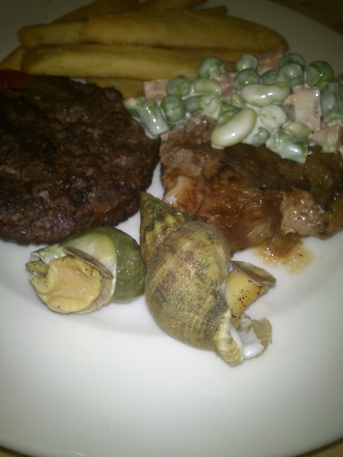 Tuż przed pokazem postanowiliśmy się posilić, więc warto tu jeszcze wspomnieć, że spełniłam jedno ze swych kulinarnych pragnień – jadłam ślimaki. Jakkolwiek dobre, tak nic wybitnego. Smak odpowiedni dla kogoś, kto lubi owoce morza.