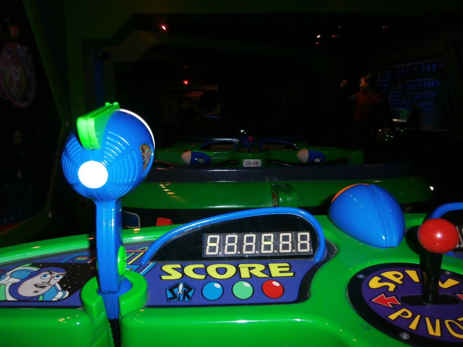Odwiedziłam chyba wszystkie atrakcje, które były dla mnie dostępne: dom strachu, spotkanie z Myszką Miki, przepływ łódkami w krainie słodkości, labirynt Alicji z Krainy Czarów… Nie będę opisywać tu każdej z nich kolejno, bo post rozrósłby się do gigantycznych rozmiarów, więc wspomnę o moich dwóch ulubionych. Jedna z nich to strzelanie z pistoletów laserowych. Zostaliśmy wsadzeni do wagoników (warto wspomnieć, że niektóre atrakcje miały specjalne wagony, do których można było wjechać wózkiem – to jest jedna z nich), w rękę otrzymaliśmy wielki pistolet, drugą chwyciliśmy za wajchę do obracania… i wio! Zawsze kochałam strzelać, więc bawiłam się nieziemsko. Drugą (zdecydowanie BEST!) atrakcją był przelot samolotem z Gwiezdnych Wojen. Wchodzi się dosłownie do statku, siada w fotelu, zapina pasy… Przed oczami pojawia się ekran i robot, będący przewodnikiem. I się leci! Pomieszczenie porusza się zgodnie z wyświetlanym na ekranie filmem (przelot między budynkami, gwiezdne wyścigi, przekraczanie bariery dźwięku – bajer!). Gdybym mogła kiedykolwiek wrócić do Disneylandu, to będzie pierwsze miejsce, jakie ponownie odwiedzę!
