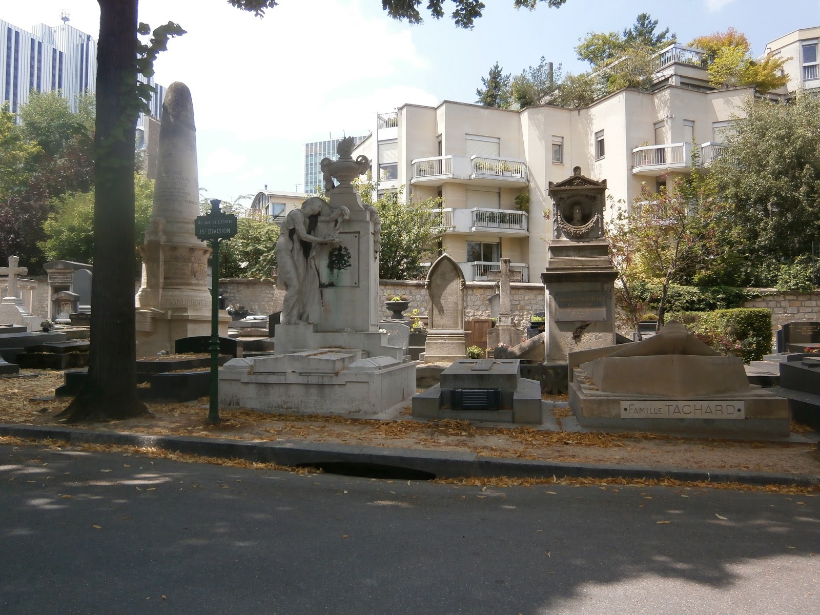 Wstaliśmy dość późno i leniwie ruszyliśmy na spacer. Gdy w końcu naszym oczom ukazał się cmentarz, serce zabiło mi mocniej. To miejsce ma dla mnie wyjątkowe, wręcz magiczne znaczenie – to właśnie tam spoczywa mój Mistrz, Charles Pierre Baudelaire. Po chwili błądzenia znalazłam główne wejście, wzięłam mapkę, przejrzałam listę nazwisk, które jeszcze mogłabym tu odwiedzić (nikt nie przykuł mej uwagi) i powoli ruszyłam na drugi koniec, wśród niezwykłych posągów i współczesnych nagrobków.
