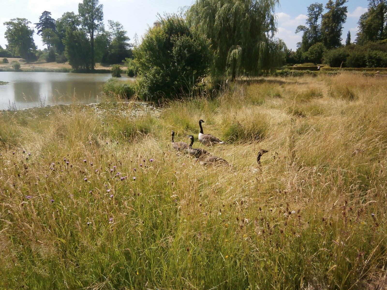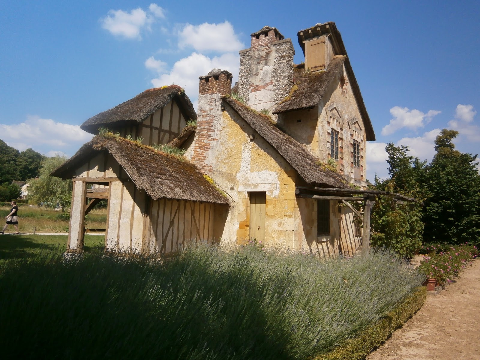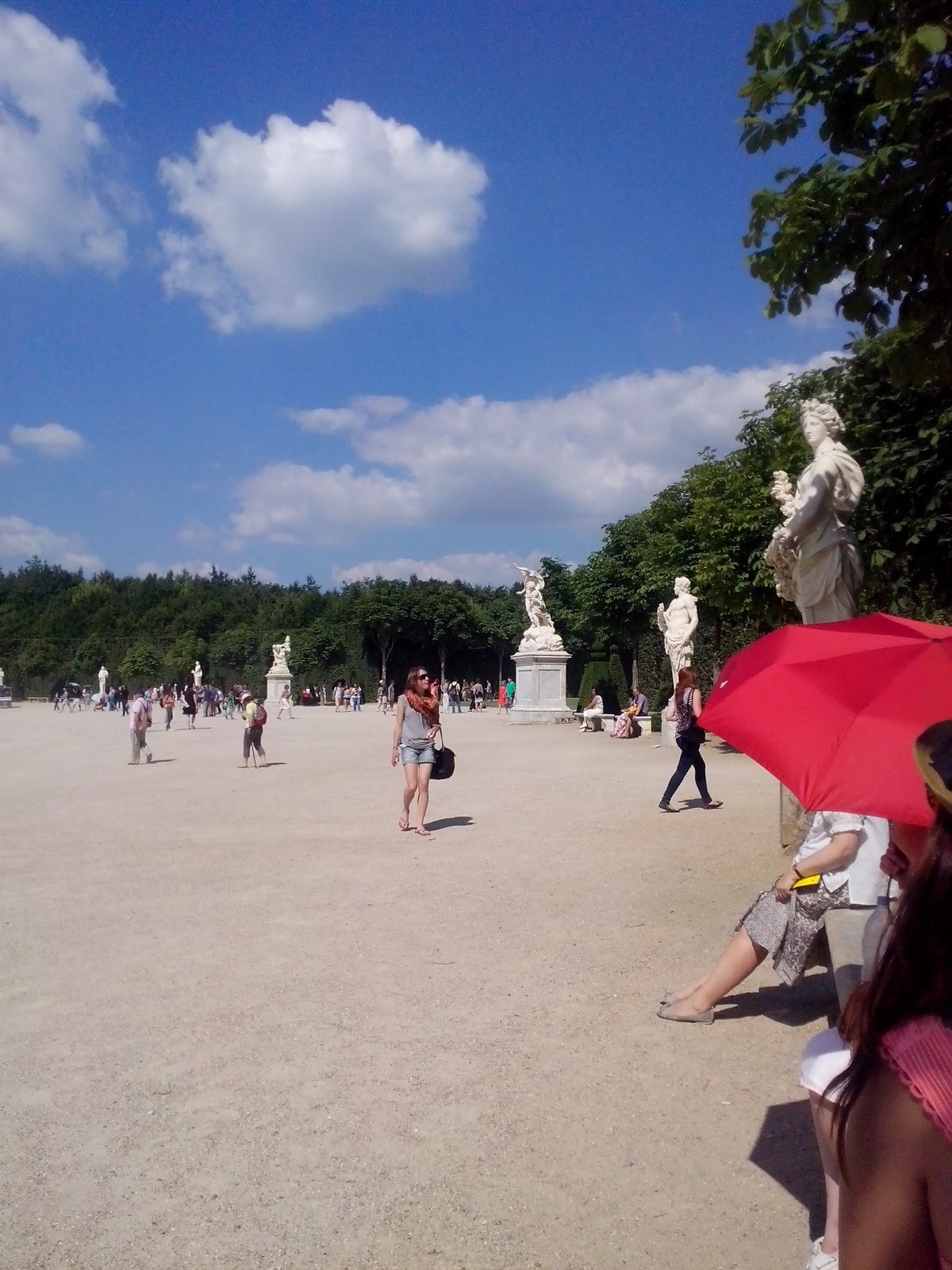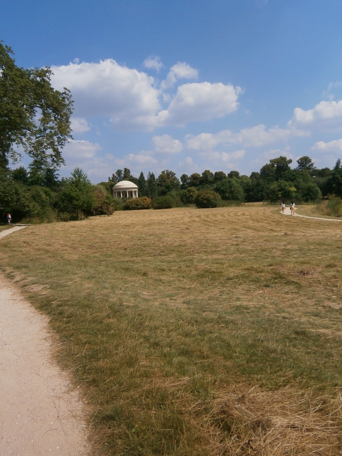 W połowie drogi zaskoczył nas fakt, że wyszliśmy na teren niepłatny. Park jednak się nie zmienił (no, może nie było tyle fontann i rzeźb). Zmierzaliśmy do ogrodu wiejskiego, zbudowanego na życzenie którejś-tam-królowej (kocham historię, ehe). Odpoczynek, prażące słońce, wolność…