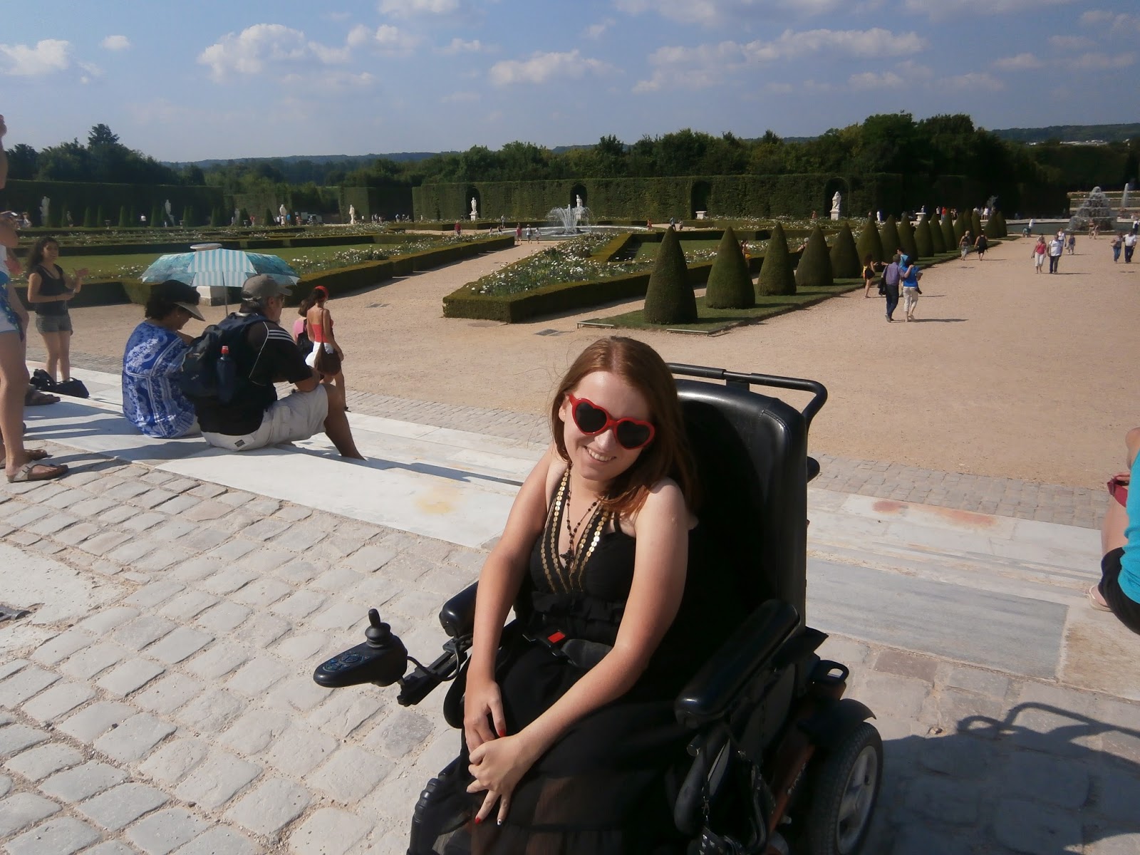 Trochę zajęło nam znalezienie parkingu (specjalnie dla wózkowiczów: tak, ta maleńka tabliczka obok rzeźby konia oznacza, że trzeba przedrzeć się autem przez plac pełen ludzi, by móc zaparkować tam, gdzie kilkaset lat temu parkowały królewskie karety), ale udało się. Krótkie przejście brukowaną uliczką (i me przerażenie w oczach na myśl, że cały park może być brukowany) i byliśmy na miejscu!