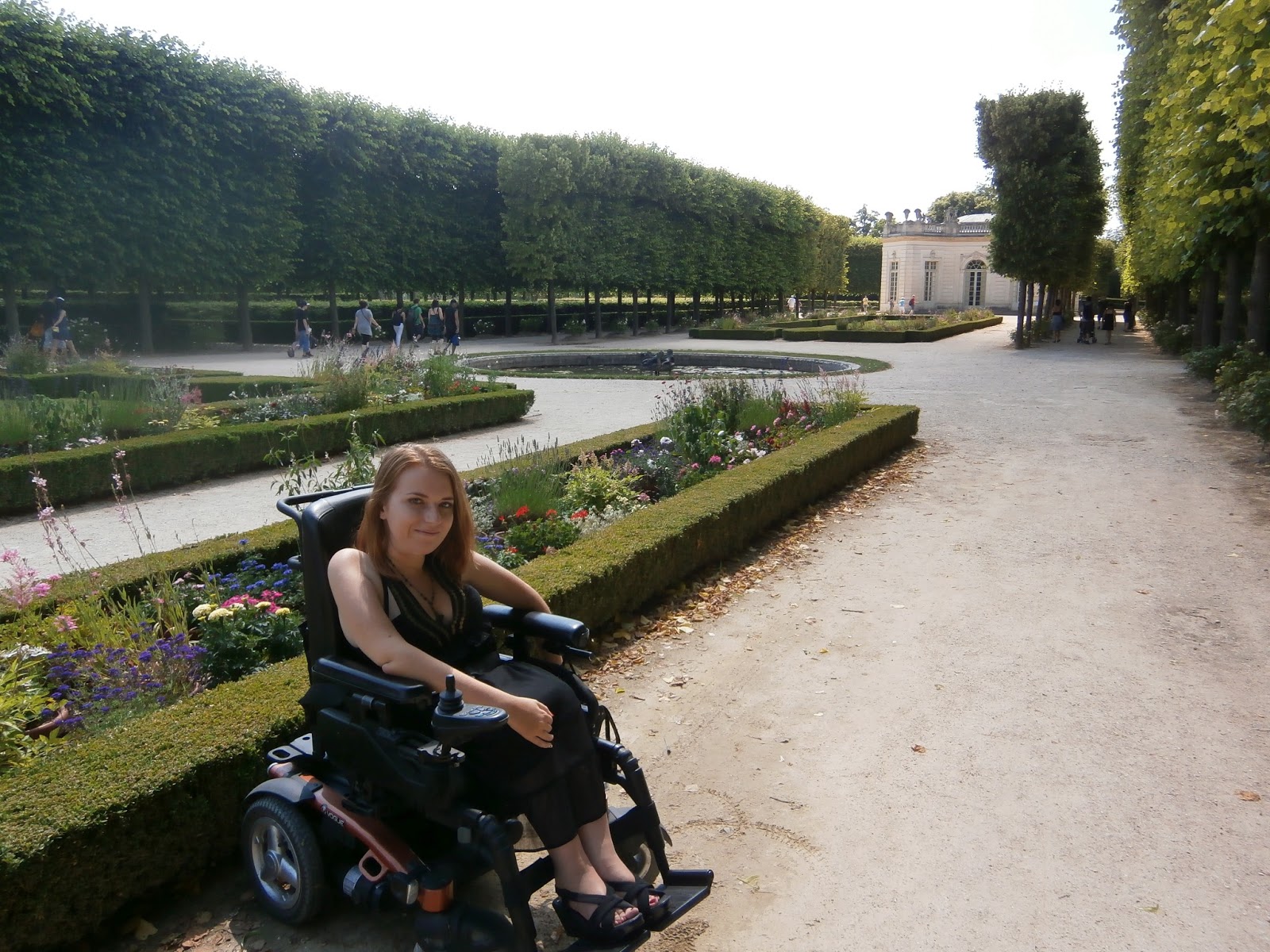 Czas się kończył – wieczór chcieliśmy spędzić w Paryżu, więc zawróciliśmy. Zrobiliśmy jeszcze kilka zdjęć pamiątkowych, posłuchaliśmy szumu wody i muzyki klasycznej puszczanej z głośników. Wersal jest piękny, jednak trzeba to lubić. Jeśli kogoś nie kręcą pałacowe klimaty, zdecydowanie zadowoli się niezwykłym ogrodem (zawierającym jednak kilka rażących wtop). I jeszcze jedna informacja z myślą o wózkowiczach: do Wersalu polecam jechać z pustym pęcherzem. Serio. Niby luksus, niby przepych, niby przystosowanie – na mapce nie jest oznaczona ani jedna dostępna toaleta. Wszędzie schody i ciasne kabiny. A gdy w końcu taką znalazłam… Cóż, stwierdziłam, że warunki w Lafayette były całkiem niezłe. No, co za Wersal!