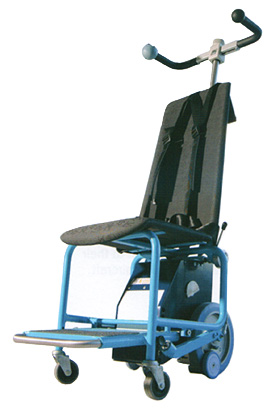 W Poznaniu osoba niepełnosprawna może aż do samego wejścia do samolotu pozostać na swoim wózku. Następnie obsługa pomaga przesiąść się na specjalny schodołaz – krzesełko, które wjeżdża po schodach. Jest to najbardziej nieprzyjemny moment podróży, ponieważ krzesełko jest wąskie i sztywne. Jeśli ktoś ma niestabilny kręgosłup, musi być cały czas dodatkowo asekurowany. Schodołaz obsługują dwie osoby, więc już w trójkę zmieścić się na stopniach jest ciężko. Nie potrafię sobie też wyobrazić na tym urządzeniu osoby naprawdę grubej – ja jestem drobna, a miałam wrażenie, że siedziska ledwo pode mną starcza. Z uwagi na tempo pakowania, nie zrobiłam żadnych zdjęć tego urządzenia. Znalazłam jedno w sieci, które prezentuję poniżej – choć nie jest to dokładnie ten typ schodołazu, którym miałam (nie)przyjemność podróżować, to jest na tyle podobny, by było widać o co mi chodzi.