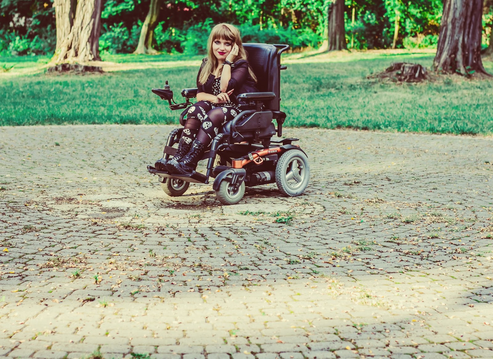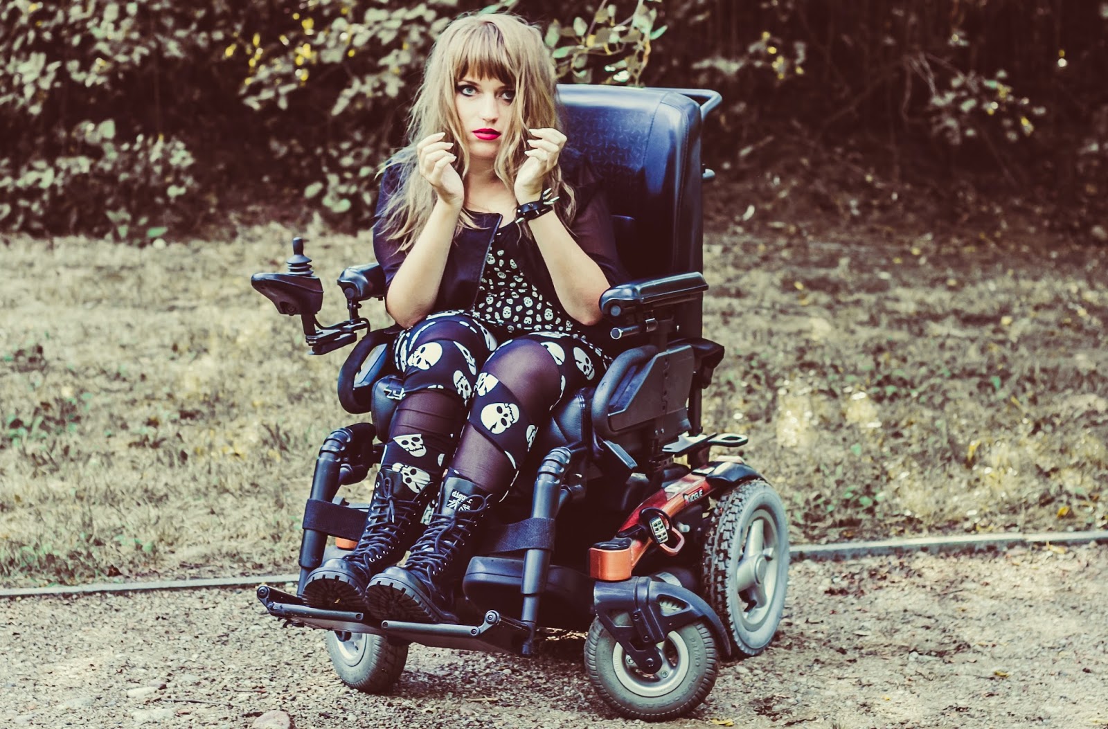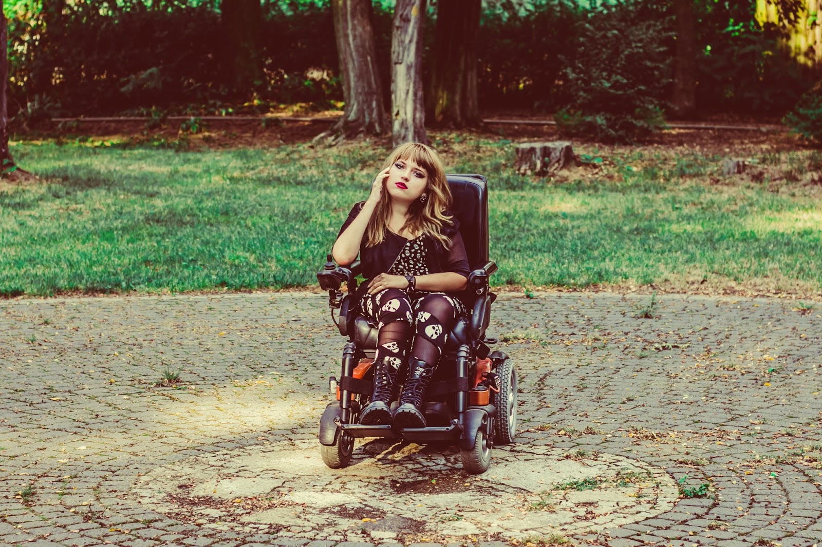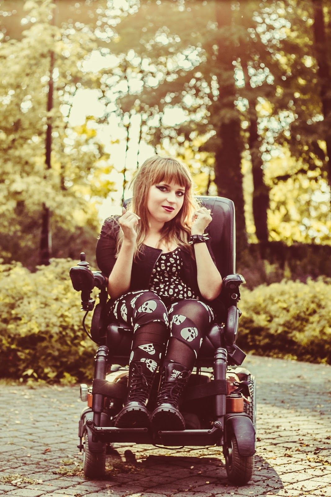 A co z butami? Ano, panie i panowie, przedstawiam Wam moje slodkie i urocze Glanusie, pieszczotliwie nazywane Grabarzami. Nie miałam ich na sobie już od dawna. Z glanami jest taka dziwna historia: gdy widzę je na ludziach – pieję z zachwytu. Gdy sama je zakładam – czuję się jak kaczka. Moje malutkie stopy nagle stają się ogromne! Jednak każde inne buty zniszczyły by buntowniczy charakter zestawu. I wiecie co? Gdy patrzę na zdjęcia – znowu odczuwam zachwyt dotyczący tych butów. Muszę przestać zwracać uwagę na to jak wyglądają z mojej siedzącej perspektywy. Z każdej innej są boskie.