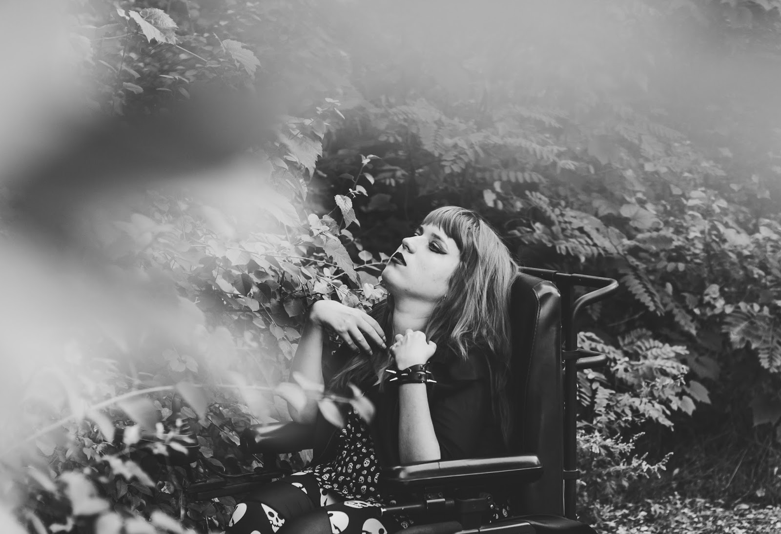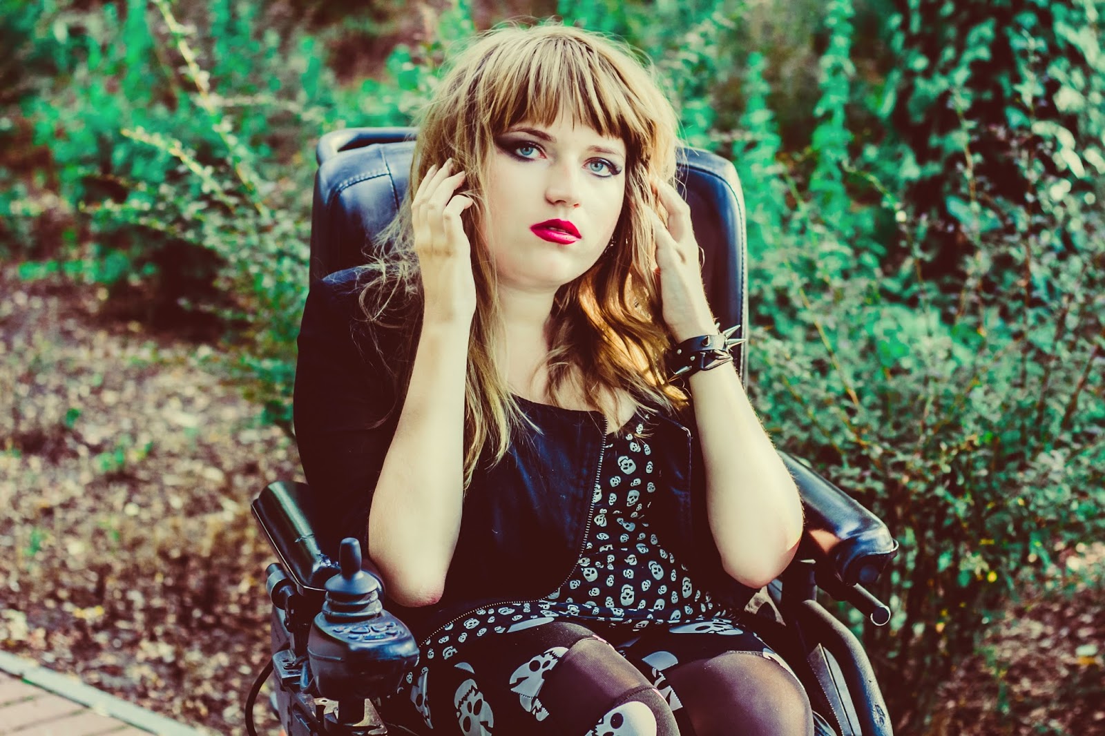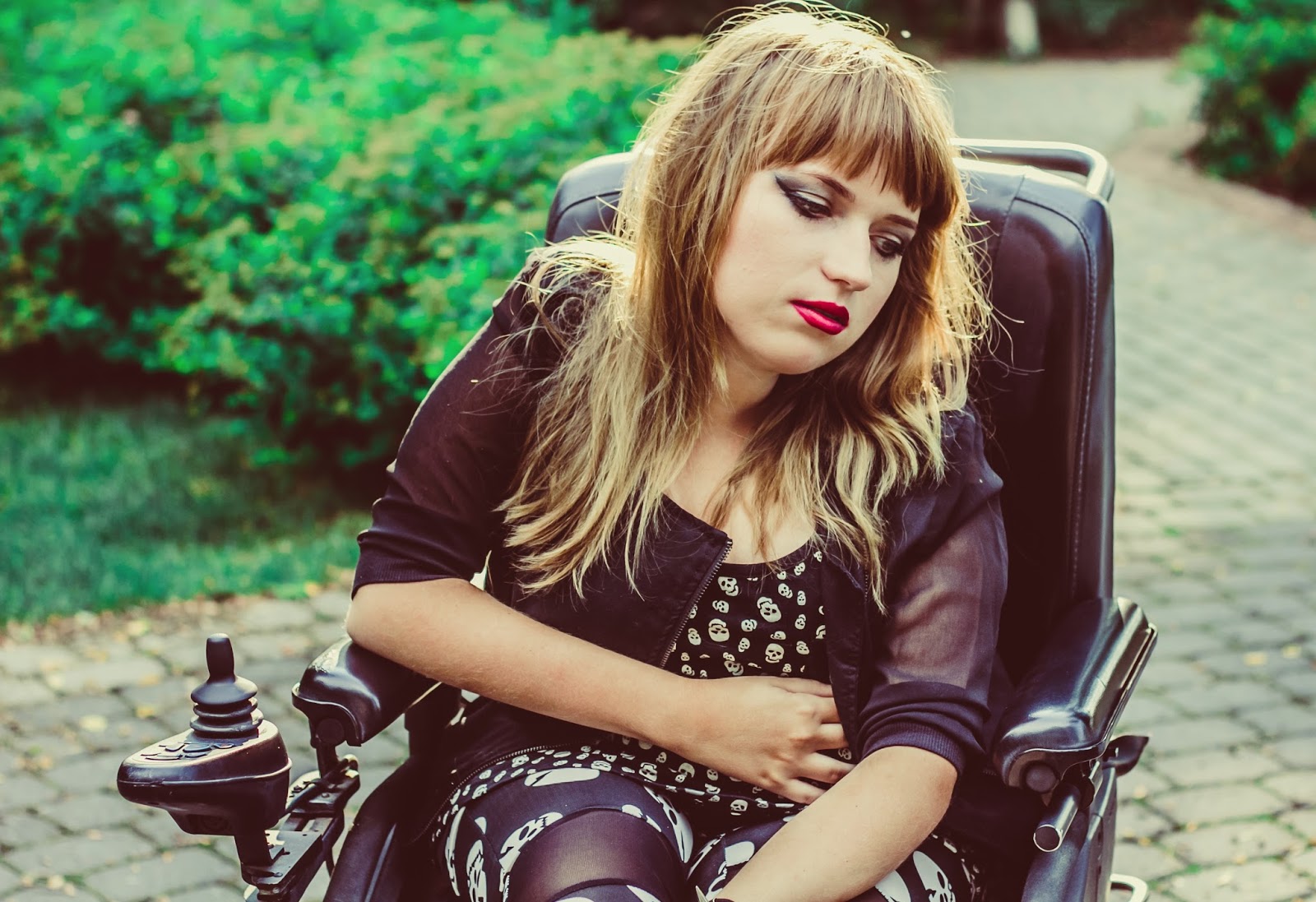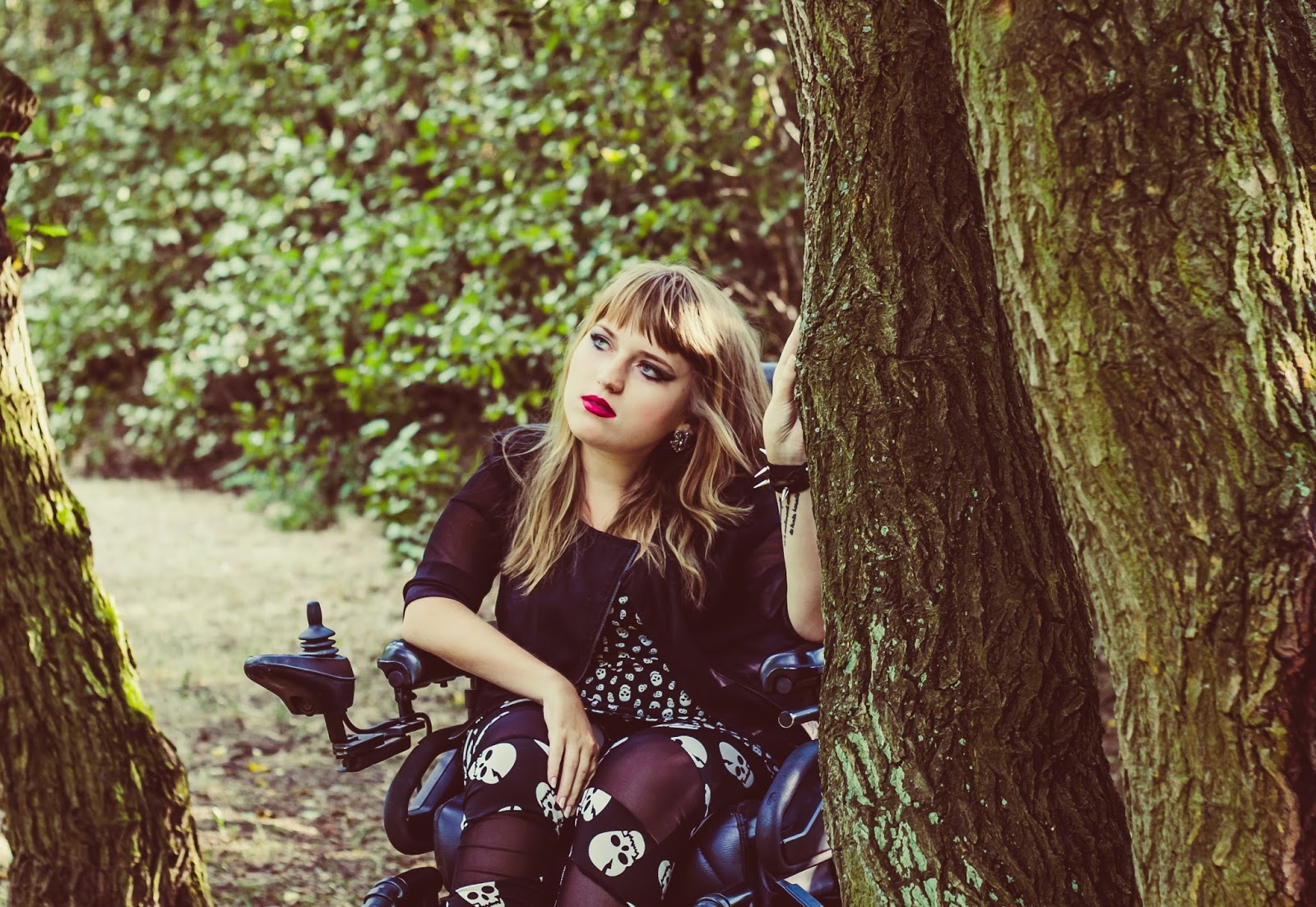 A co z butami? Ano, panie i panowie, przedstawiam Wam moje slodkie i urocze Glanusie, pieszczotliwie nazywane Grabarzami. Nie miałam ich na sobie już od dawna. Z glanami jest taka dziwna historia: gdy widzę je na ludziach – pieję z zachwytu. Gdy sama je zakładam – czuję się jak kaczka. Moje malutkie stopy nagle stają się ogromne! Jednak każde inne buty zniszczyły by buntowniczy charakter zestawu. I wiecie co? Gdy patrzę na zdjęcia – znowu odczuwam zachwyt dotyczący tych butów. Muszę przestać zwracać uwagę na to jak wyglądają z mojej siedzącej perspektywy. Z każdej innej są boskie.