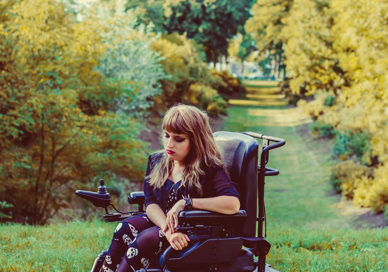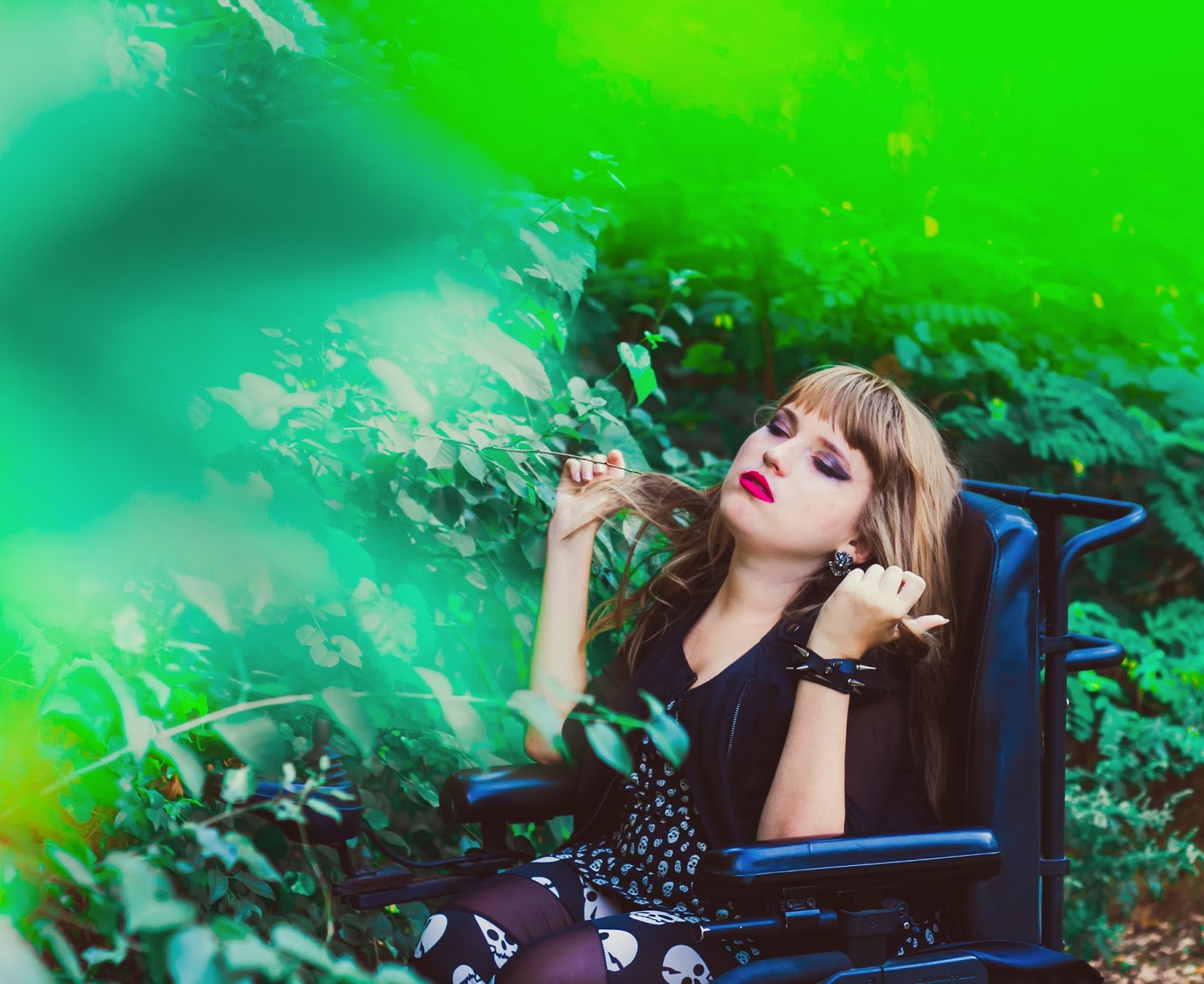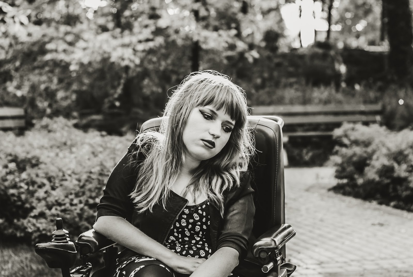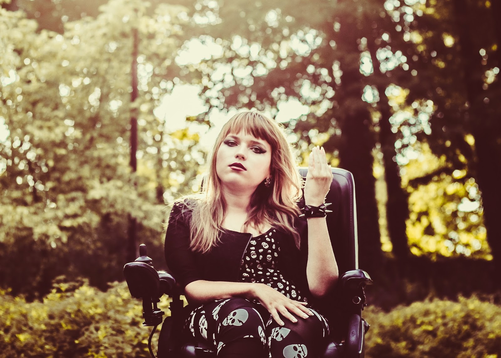 A co z butami? Ano, panie i panowie, przedstawiam Wam moje slodkie i urocze Glanusie, pieszczotliwie nazywane Grabarzami. Nie miałam ich na sobie już od dawna. Z glanami jest taka dziwna historia: gdy widzę je na ludziach – pieję z zachwytu. Gdy sama je zakładam – czuję się jak kaczka. Moje malutkie stopy nagle stają się ogromne! Jednak każde inne buty zniszczyły by buntowniczy charakter zestawu. I wiecie co? Gdy patrzę na zdjęcia – znowu odczuwam zachwyt dotyczący tych butów. Muszę przestać zwracać uwagę na to jak wyglądają z mojej siedzącej perspektywy. Z każdej innej są boskie.