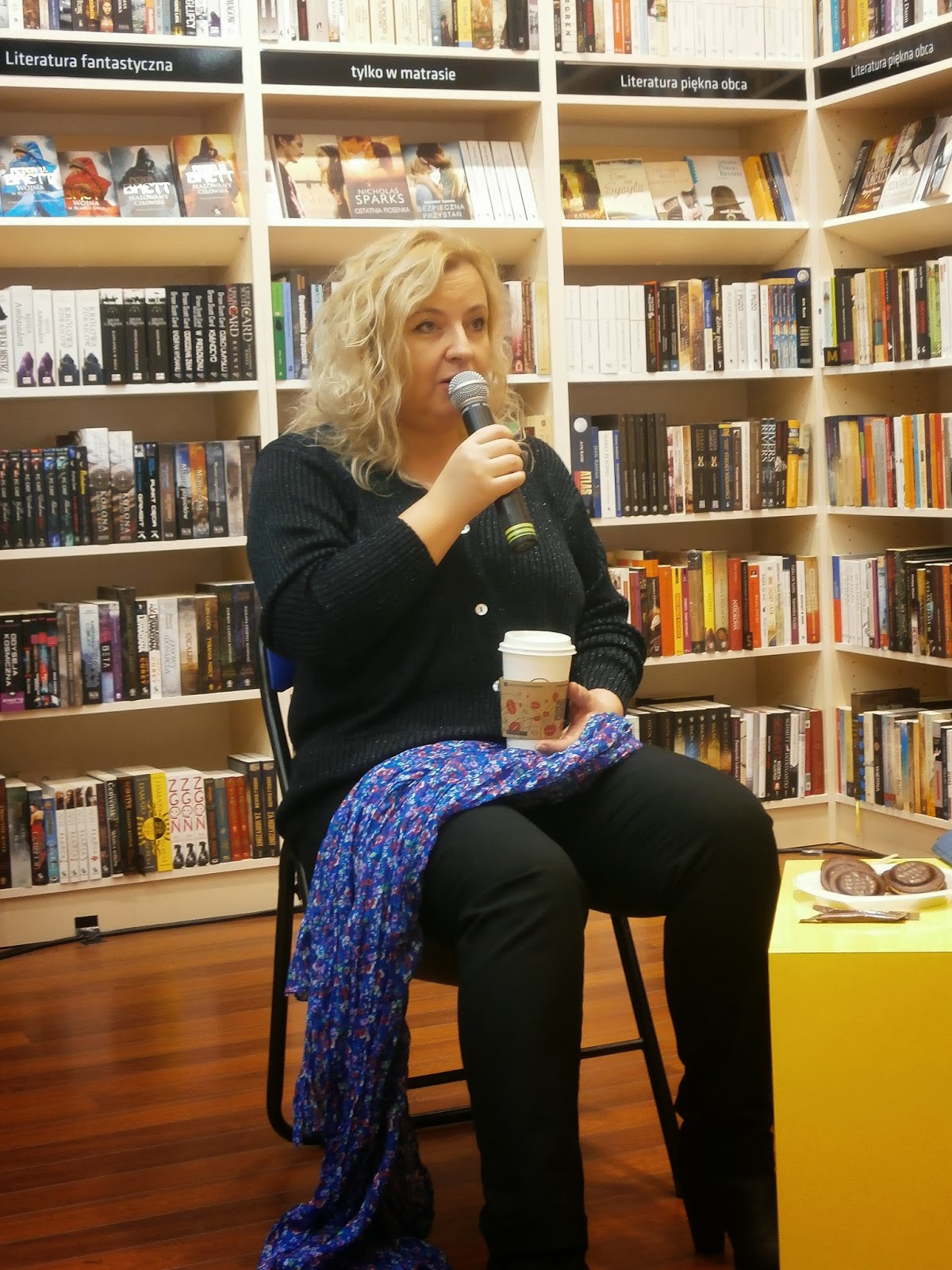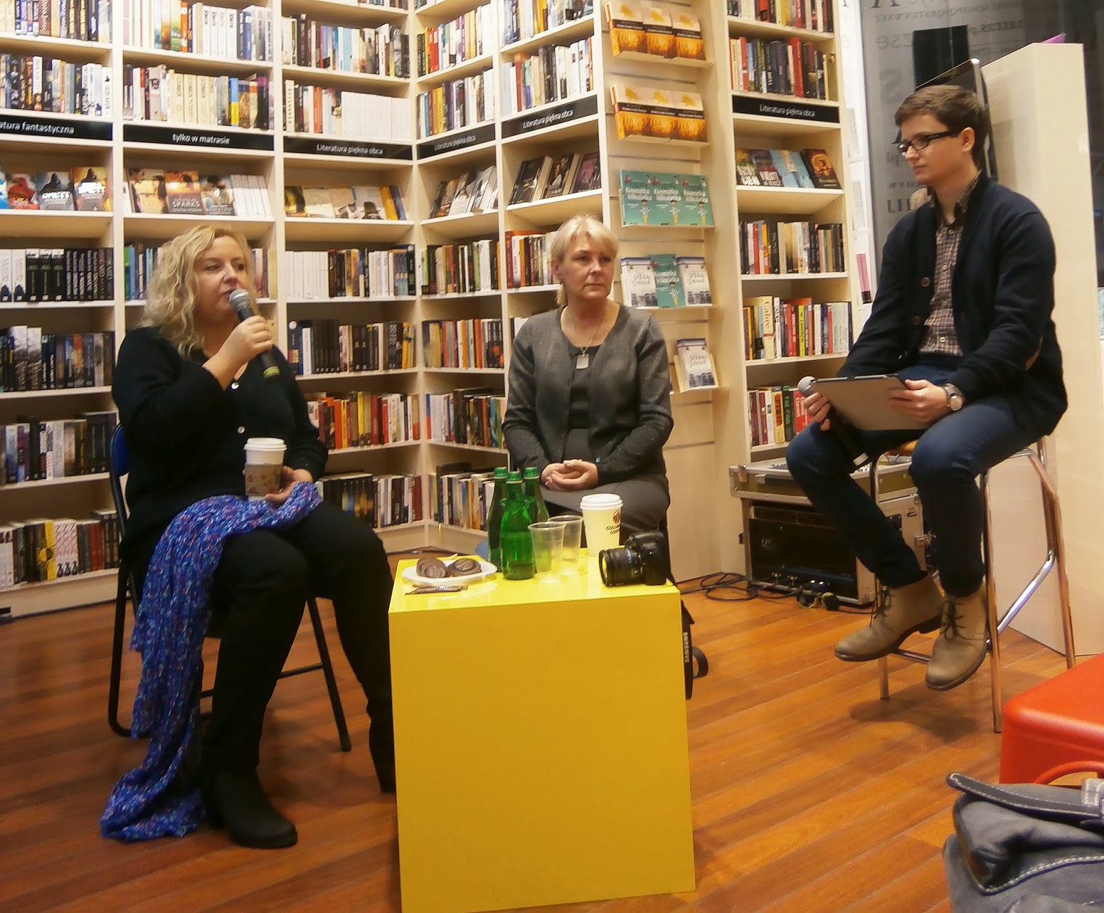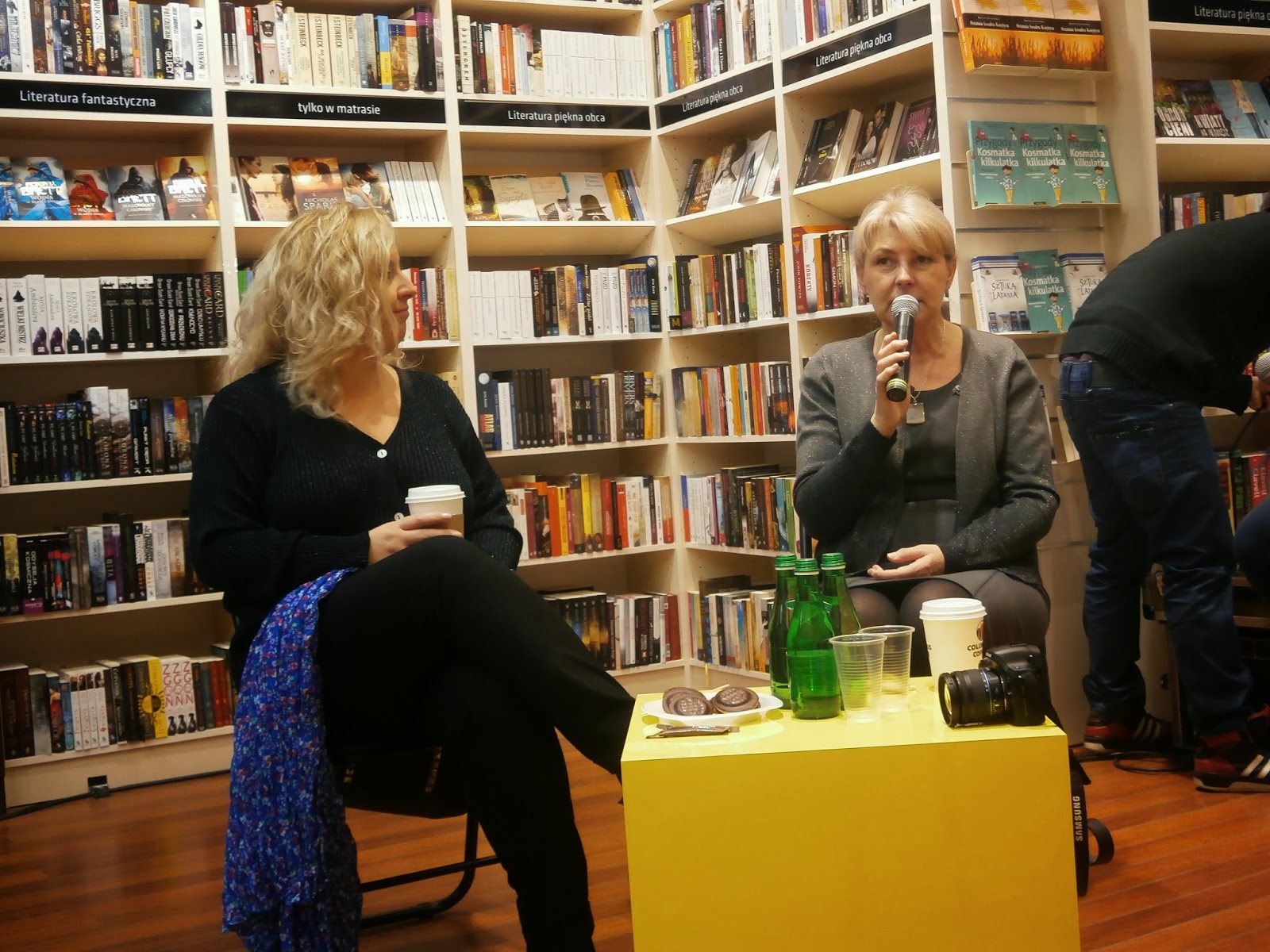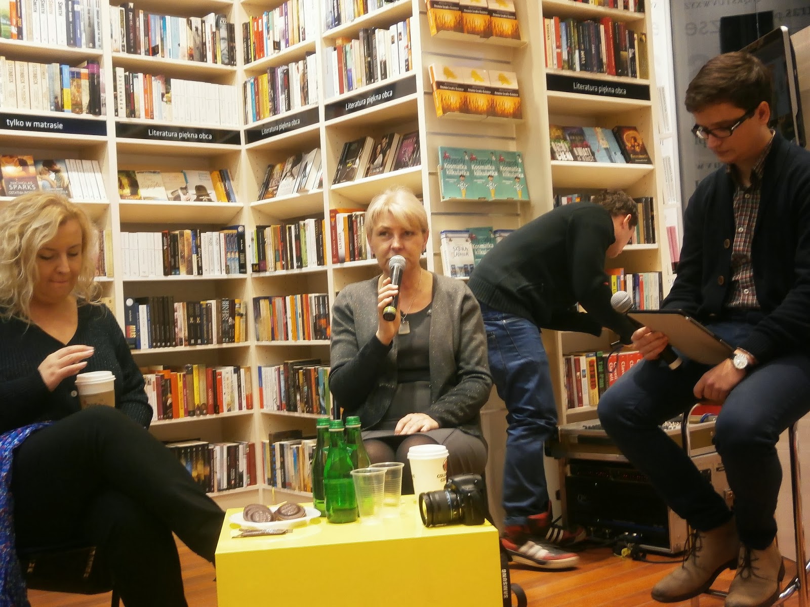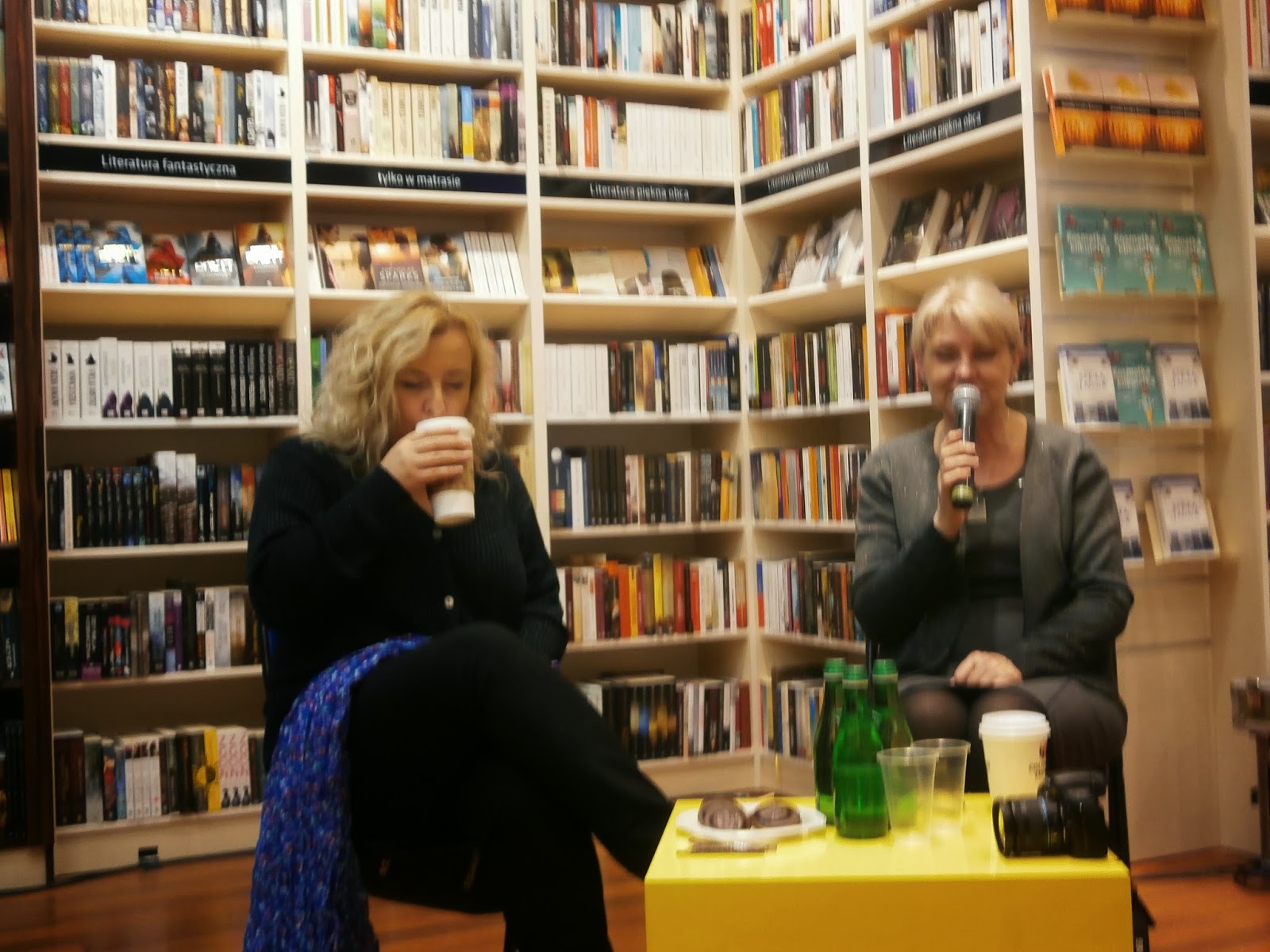 Długo nie trwało i podeszła do mnie Krystyna Januszewska – jedna z pisarek. Niezwykle sympatyczna kobieta, z którą natychmiastowo złapałyśmy wspólny język i zaczęłyśmy rozmawiać, śmiejąc się i opowiadając anegdoty. Po pewnym czasie pojawiła się Magda Kawka, urocza blondynka o roześmianej twarzy. Już wiedziałam, że to spotkanie będzie udane!